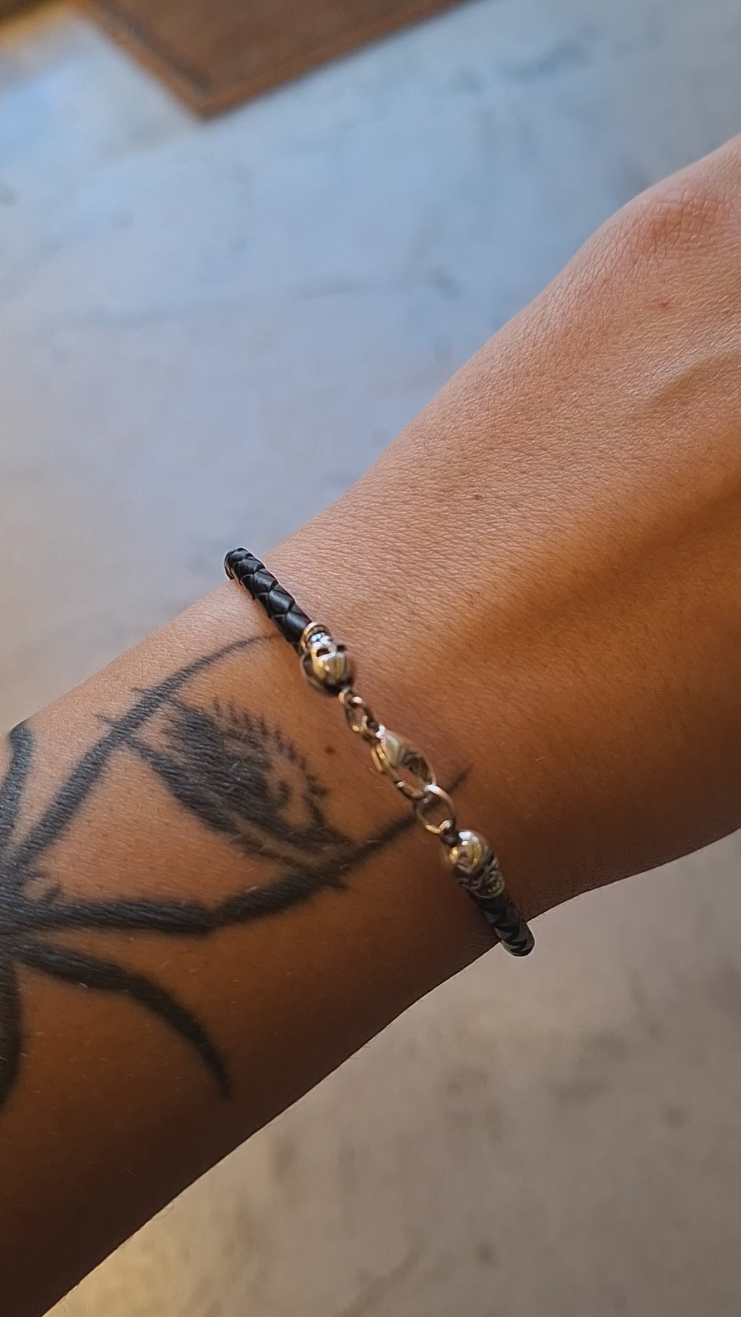 Handmade leather bracelet with 925 sterling silver skulls that combine elegance and rock 'n' roll attitude.
